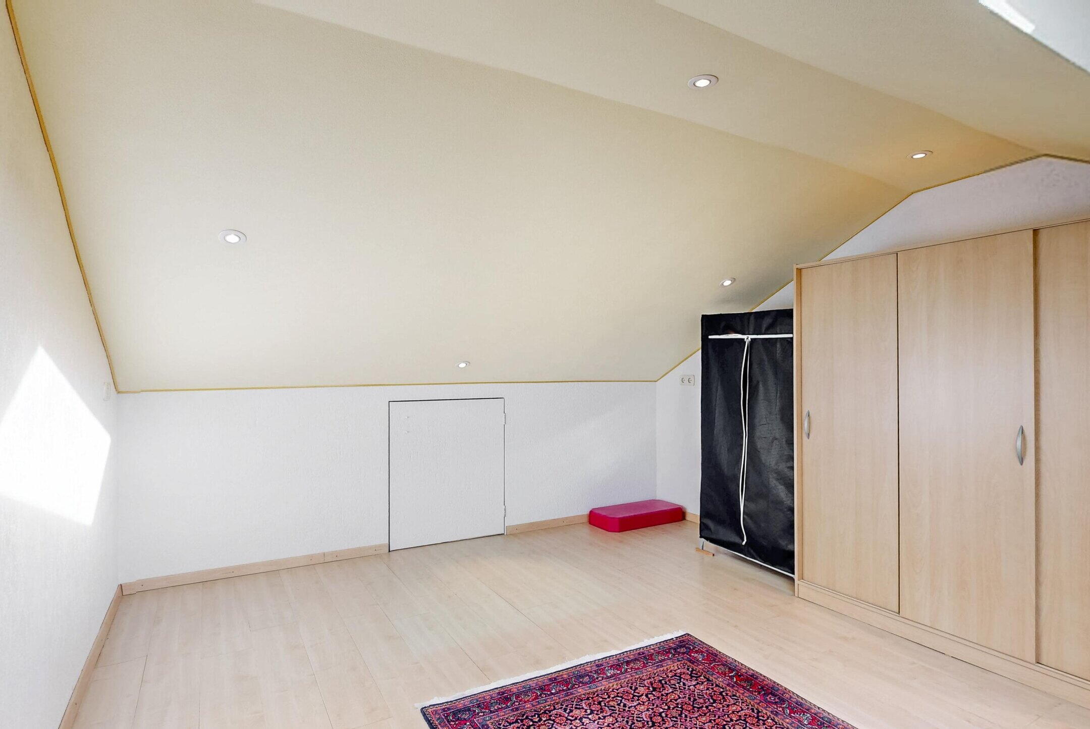 De tweede verdieping is bereikbaar via een (smalle) vaste trap en beschikt over een ruime kamer (ca. 20m²) die zich uitstekend leent voor het realiseren van een extra slaapkamer, werkkamer of hobbyruimte. Dankzij de lichtinval is de ruimte aangenaam en licht. De kamer biedt daarnaast praktische bergruimte, aangevuld met een extra berging naast de overloop. Ideaal om spullen op te slaan die je niet dagelijks nodig hebt. Hier is ook de Cv-installatie gesitueerd. De combi-ketel is uit 2001 en in eigendom. Tevens zou naast de Cv-installatie ruimte zijn voor het plaatsen van een wasmachine.