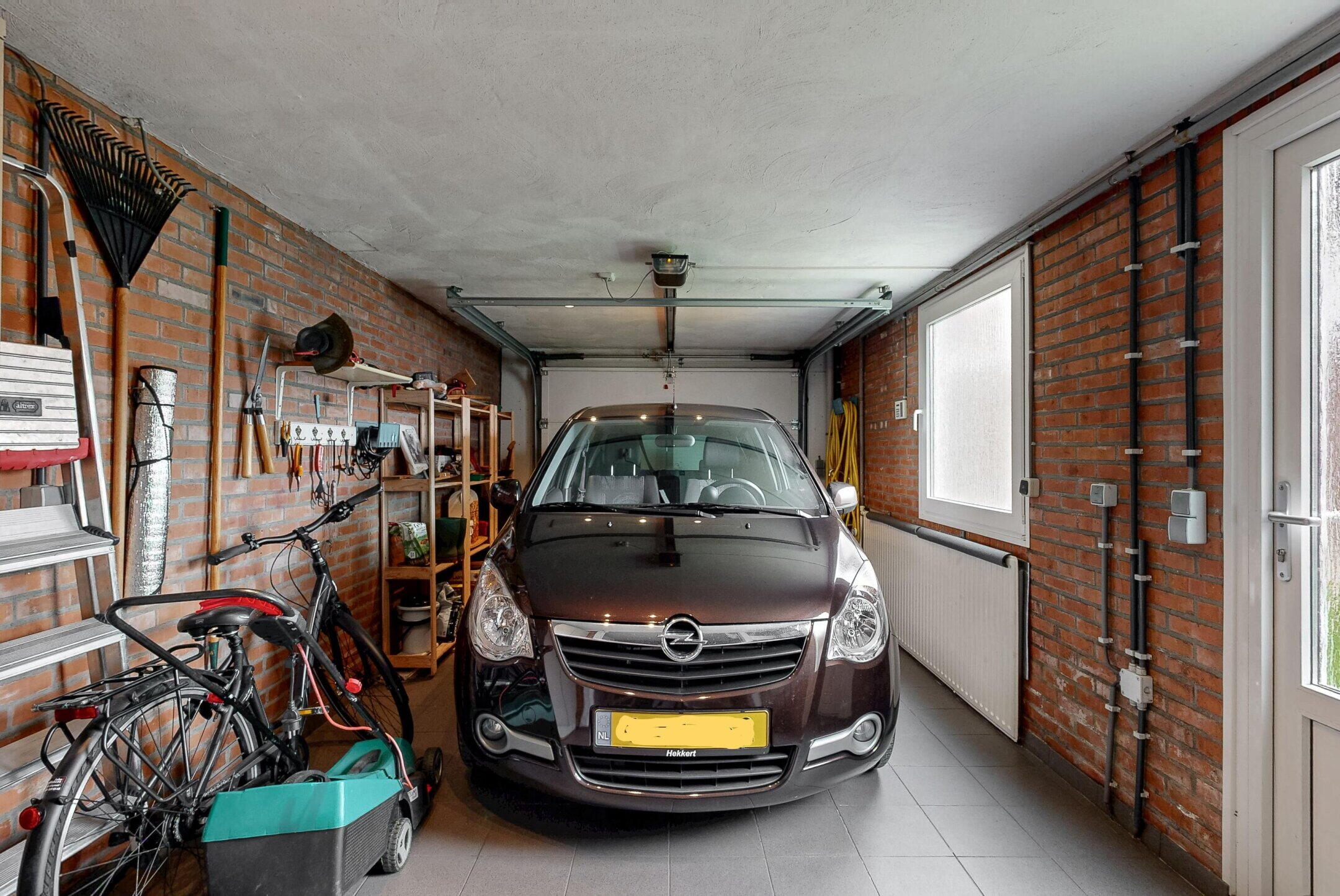 - Stenen garage voorzien van verwarming, elektra, water en elektrische deur;